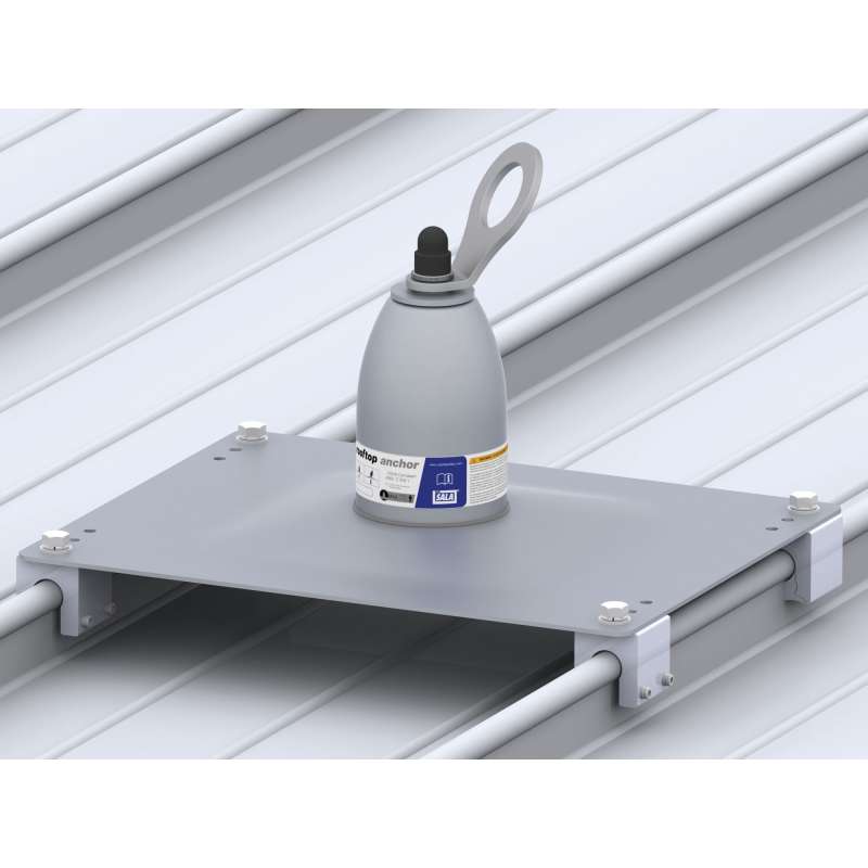 The 3M™ DBI-SALA® Roof Top Anchor For Standing Seam Roofs is designed for low sloped steel, or stainless steel standing seam metal roofs. It clamps directly onto the seams for a secure fit and can fasten up to two personal fall arrest systems at a time.