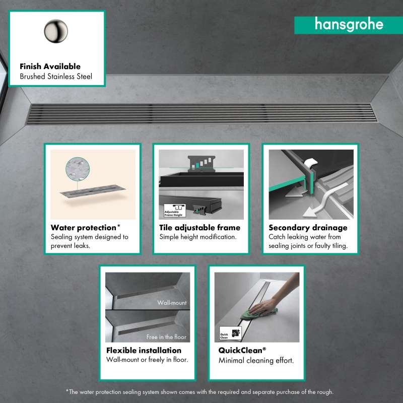 - Suitable Installation: The hansgrohe RainDrain system is suitable for both new contruction and renovation