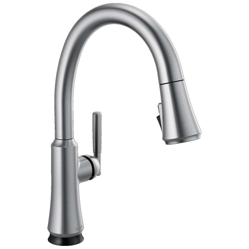 A contemporary take on traditional styling, the coranto kitchen collection brings everyday refinement to a space with subtle design details. Life moves fast, touchless technology keeps up. Delta touch2o faucets with touchless technology help keep germs and mess off your kitchen faucet and provides easy water control 3 ways: simply place your hand near the faucet, tap the faucet surface, or use standard handle activation. The tempsense led light changes color to alert you to the water’s temperature and eliminate any possible surprises or discomfort. Magnatite docking uses a powerful integrated magnet to pull your faucet spray wand precisely into place and hold it there so it stays docked when not in use. Shieldspray technology cleans with laser-like precision while containing mess and splatter. A concentrated jet powers away stubborn messes while an innovative shield of water contains splatter and clears off the mess, so you can spend less time soaking, scrubbing and shirt swapping. Delta faucets with diamond seal technology perform like new for life with a patented design which reduces leak points, is less hassle to install and lasts twice as long as the industry standard. You can install with confidence, knowing that delta faucets are backed by our lifetime limited warranty.