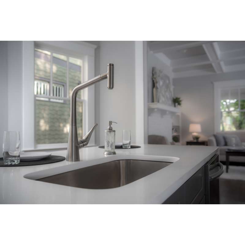 Design With a range of models and styles, paired with the quality and design you expect from hansgrohe, dream kitchens become a reality. Kitchen faucets by hansgrohe exude beautiful design, superior durability, and unique features that are intuitive to use. Pick your desired faucet, then browse the entire product suite for complementary fixtures. German engineering ensures a lifetime of consistent and dependable operation. Maintenance Products that function perfectly are essential. To ensure that they do, every hansgrohe kitchen faucet is 100% air-tested in production. The silicone aerator and spray nozzles help optimize water flow performance, resist mineral deposit build-up, and are designed to be easily wiped clean. Installation Can be installed over existing multi-hole counter configurations. Standard 3/8-inch pipe connection hoses included. Baseplate sold separately. Please comply with all local, state, and federal plumbing codes and regulations. Installation instruction link below. Customer Support customerservice@hansgrohe.com | 1 (800) 334-0455 | Limited Lifetime Warranty | Installation / User Guide / Warranty PDF links below