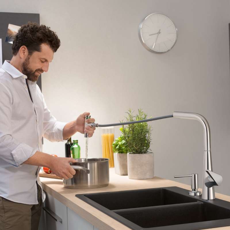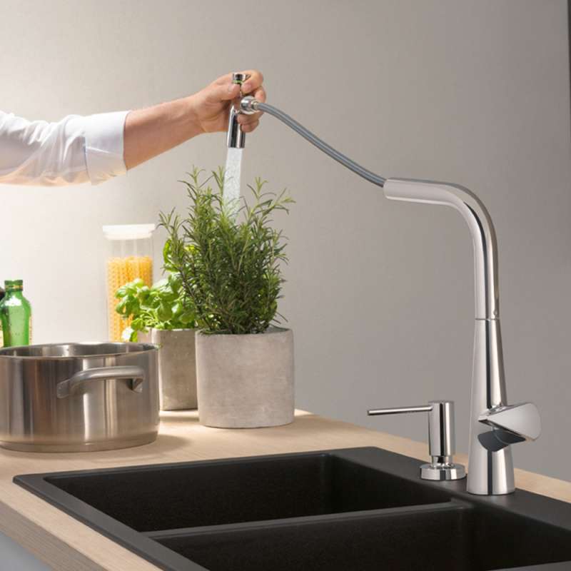 - More comfort: with pull-out spray for a larger range of action and targeted rinsing of fruit and vegetables