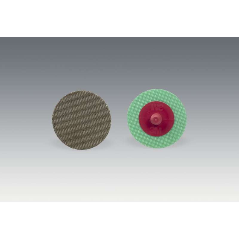 The 3M™ Roloc™ Flexible Diamond Disc 6234J delivers consistently superior results on hard-to-grind materials like stone, glass, ceramic, metal, carbide and composites. Metal-plated bond anchors micron-graded diamonds to a heavy-duty polyester backing for flat, edge, contour grinding and polishing. Improved Finishes, Improved Productivity The sharp, smooth cutting action of the 3M™ Roloc™ Flexible Diamond Disc 6234J consistently achieves improved finishes on a wide range of hard-to-grind materials – without sacrificing cut rates. The open-dot pattern of micron-graded diamond abrasive helps prevent loading and encourages coolant flow and swarf removal. In combination with a heavy-duty, water resistant, polyester backing, this is a durable, long-lasting disc suitable when you need the toughness of diamond. Quick-change Roloc™ Attachment 3M™ Roloc™ TR quick change discs are smaller discs that have a plastic threaded button or screw designed to easily and quickly screw onto a Roloc™ TR disc pad (sold separately) so that operators can conveniently change discs with a simple twist-off, twist-on motion. The Roloc™ TR system provides a secure attachment even for heavy-duty applications, and the variety of available 3M Roloc discs allows swapping from one application to the next in seconds. Each TR attachment button is also color-coded to identify its grade, making it easy to grab the grade required for different applications.