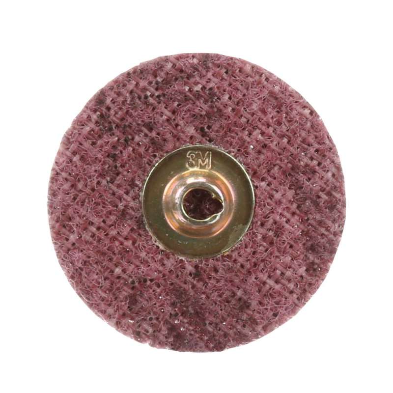 Scotch-Brite™ Roloc™ Surface Conditioning Discs combine durable, non-woven disc with the efficiency of the 3M™ Roloc™ quick-change attachment system for an effective disc that cleans, finishes, blends, and deburrs. The non-woven fiber construction conforms well to help preserve irregular or contoured surfaces and the Roloc™ backing supports the disc for aggressive cutting. The open-web fiber runs cool and resists loading while the aluminum oxide abrasives provide a high cut-rate for consistent finishing. The 3M™ Roloc™ attachment system offers quick and easy disc change-out, making the Roloc™ Surface Conditioning Disc ideal for a range of tasks including blending, deburring, and finishing. Aluminum oxide abrasive is used in Scotch-Brite™ Roloc™ Surface Conditioning Discs. Aluminum oxide is a popular choice among industrial professionals because of its cut-rate and long life. This mineral is a tough, durable abrasive that self-fractures to expose fresh cutting edges in use, whereas traditional abrasives, such as garnet, quickly wear down with use. Due to its high cut-rate, hardness, strength, and low heat retention, aluminum oxide mineral is widely used in grinding applications in addition to sanding and finishing use. Aluminum oxide is suitable on a wide variety of substrates in both woodworking and metalworking, including ferrous alloys. Scotch-Brite™ surface conditioning products were developed with abrasives incorporated into non-woven nylon or synthetic fibers. Combining abrasives with the fibers creates an abrasive system that delivers consistent results for the life of the product. The open-web material runs cool, reducing the risk of part discoloration and warping. The fibers are load resistant and keep the abrasive minerals cutting at high performance by limiting clogging of the fibers, which also extends the life of the disc. 3M™ Roloc™ TR quick change discs are smaller discs that have a plastic threaded button or screw designed to easily and quickly screw onto a Roloc™ TR disc pad (sold separately) so that you can conveniently change discs with a simple twist-off, twist-on motion. The Roloc TR system provides a secure attachment even for heavy-duty applications, and the variety of available 3M™ Roloc™ discs allows swapping from one application to the next in seconds.