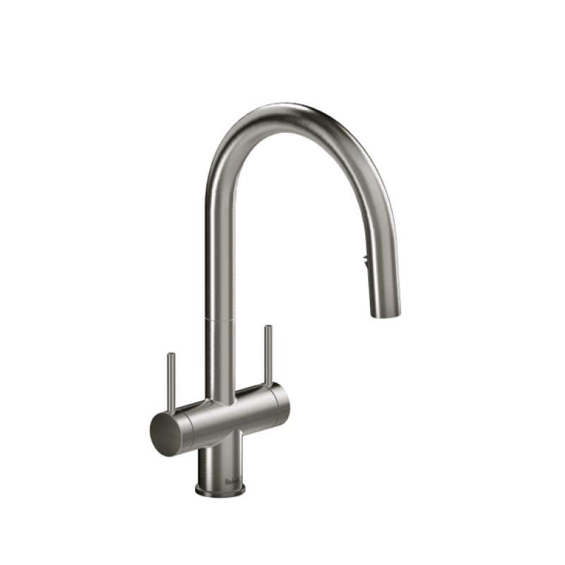 Riobel stainless steel finish is a durable physical vapor depostion (pvd) process that is harder and more corrosion resistant than coatings from a galvanic process. The coating has a high impact strength, excellent abrasion resistance and is very durable. The result is an industrial look that has more of a bluish tone suitalbe for working kitchens. This stable finish does not tarnish. The kitchen is the most visited and social room of the home. As such, it deserves to not only look great but to also offer the utmost in functionality. Riobel kitchen faucets feature brilliant engineering along with high design. A wide variety of configurations exist, including pull-down faucets with unique boomerang retraction technology, pull-out faucets for extended reach, coordinating bar and food prep faucets, and bridge kitchen faucets with dual-spray functionality. The unique features offered in each kitchen faucet serve a very specific purpose - to simplify the homeowner's daily activities, both as meals are prepared and ultimately as dishes are cleaned afterwards. Flexible spouts, retractable hand sprays and desirable finishes are just a few of the reasons why riobel faucets stand out in the kitchen space. Defining modern faucets, fixtures, hardware and accessories is complex due to the many expressions called "modern". For example, the term can refer to art movements in the past or the style's interior design roots in scandinavia. But regardless of expression, modern design often is simple and sleek. It is devoid of ornate details and has monochromatic tendencies. Modern decor elements usually have specific purposes and functions. The modern design concept is one of balance, minimalism, and is linear, though not always angled. And yet, architectural and geometric elements are often present in this style, and while the aesthetics are minimal and uncluttered, modern style is the epitome of sophistication and elegance. Modern style is timeless.