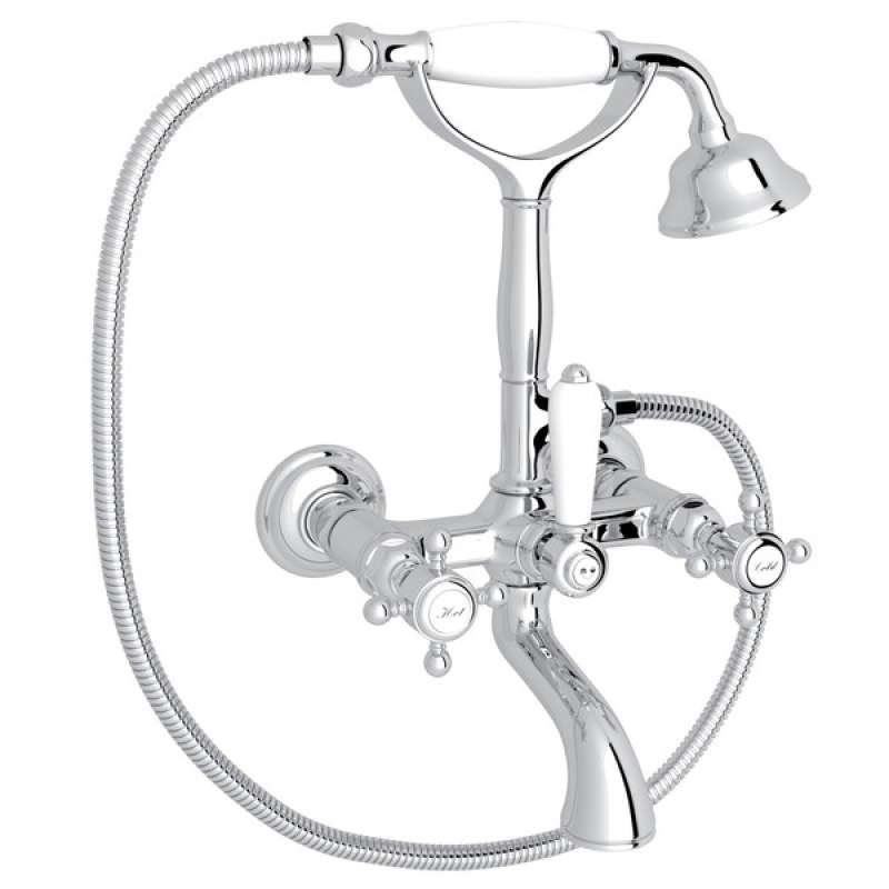 A1401XMAPC Exposed Wall Mount Tub Filler with Handshower and Cross Handle, Polished Chrome