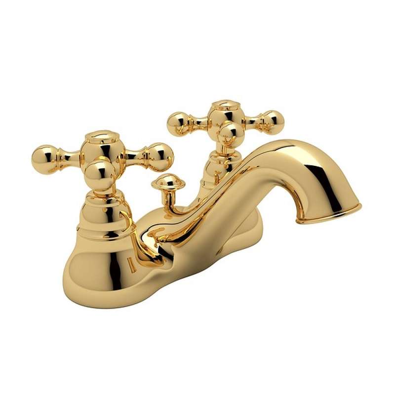 4" Centerset Lavatory Faucet with Cross Handles and Pop-Up in Italian Brass