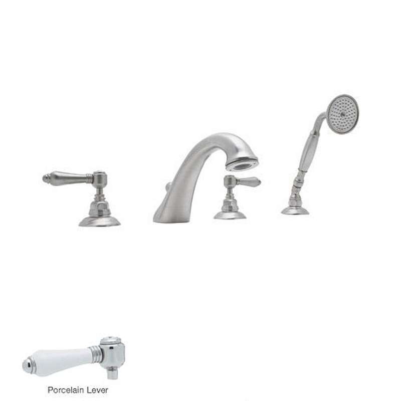 - Country Bath Roman Tub Faucet with Porcelain Lever Handles and Single Function Hand Shower