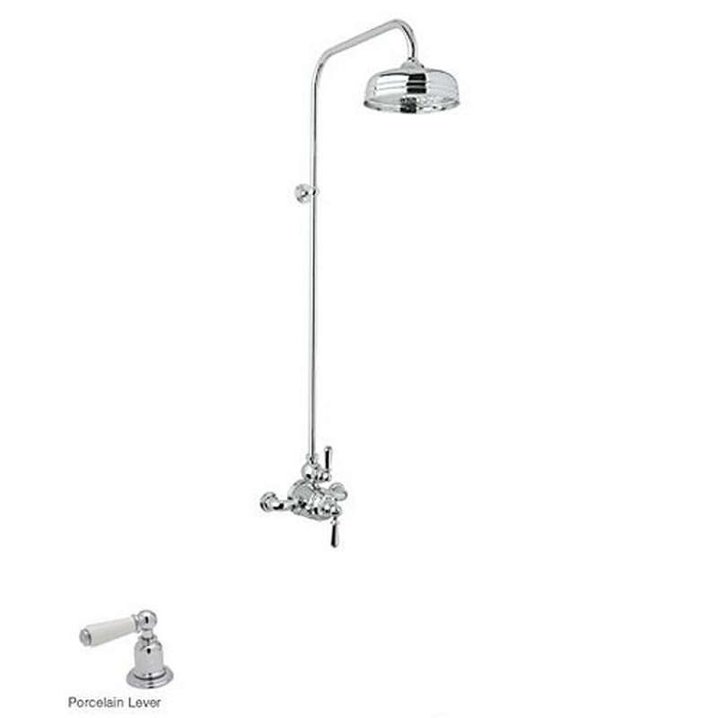 - Perrin and Rowe Shower System with Exposed Thermostatic Valve, Shower Head, 40in Shower Riser, and Metal Lever Handles