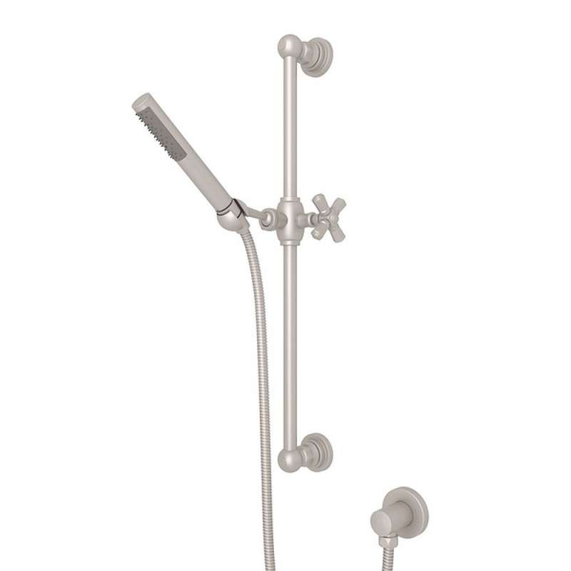 - Complete with the following items: A8073XM: Slide bar with cross handle sliding bracket handshower holder; C7135: Single-function brass handshower_x000B_; 16295: Flexible 59" metal hose_x000B_; 33640: Wall outlet