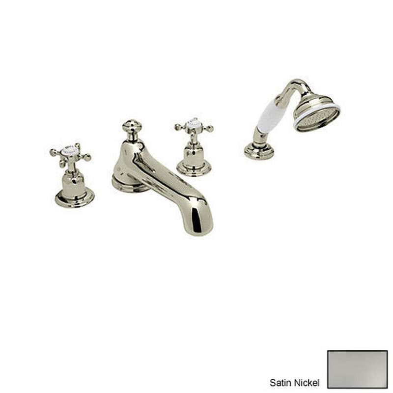 - Perrin and Rowe Deck Mount Tub Filler Faucet with Metal Cross Handles