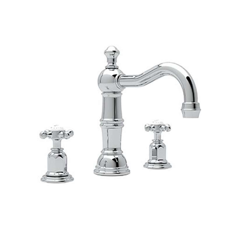 - Perrin and Rowe Low Lead Widespread Bathroom Faucet and Metal Cross Handles