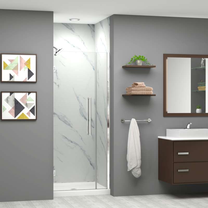 - 30.5 - 31-in W x 76-in H wall mounted single panel swing shower door for an alcove (3-wall) shower