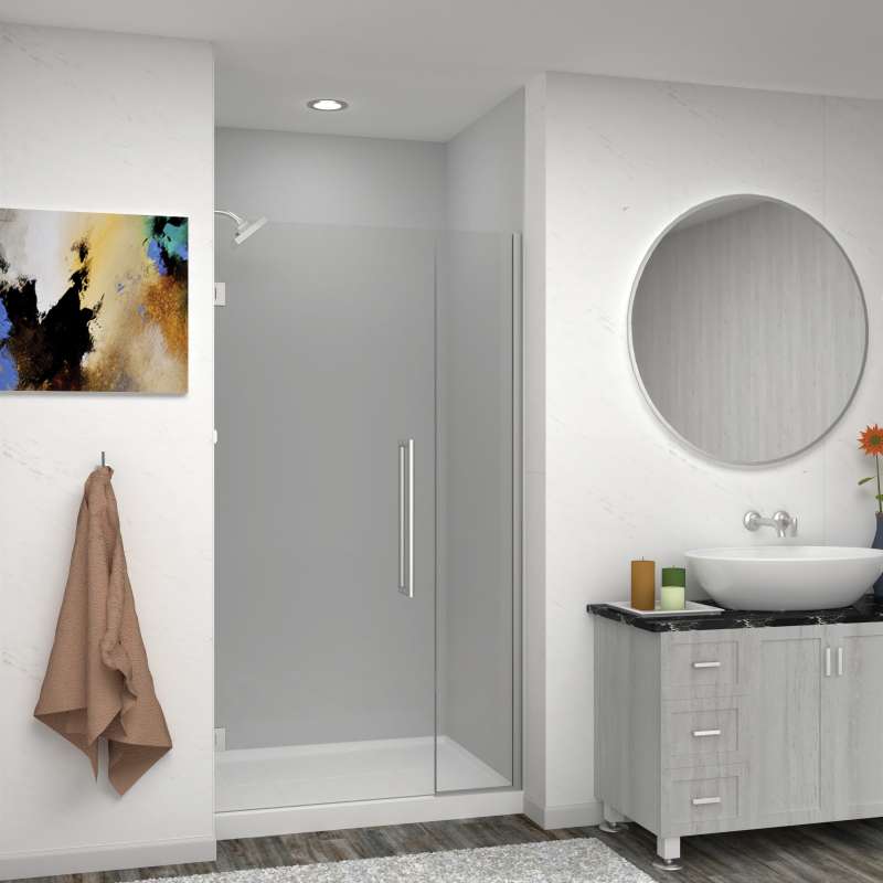 - 42 - 42.5-in W x 76-in H wall mounted single panel swing shower door for an alcove (3-wall) shower
