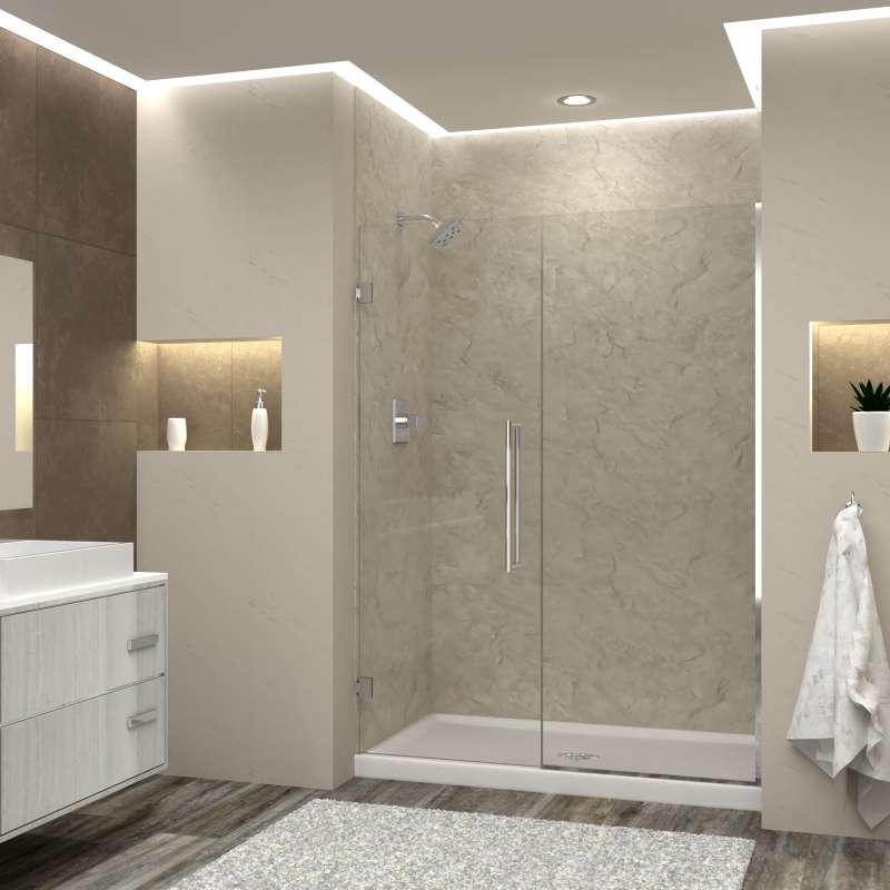 - 54.5 - 55-in W x 76-in H wall mounted single panel swing shower door for an alcove (3-wall) shower