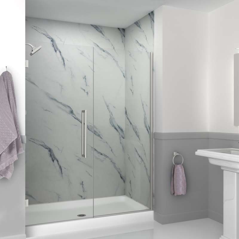 - 58.5 - 59-in W x 76-in H wall mounted single panel swing shower door for an alcove (3-wall) shower