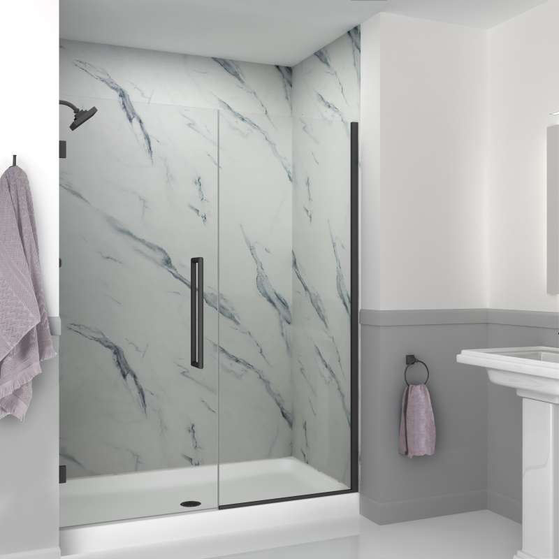 - 58.5 - 59-in W x 76-in H wall mounted single panel swing shower door for an alcove (3-wall) shower