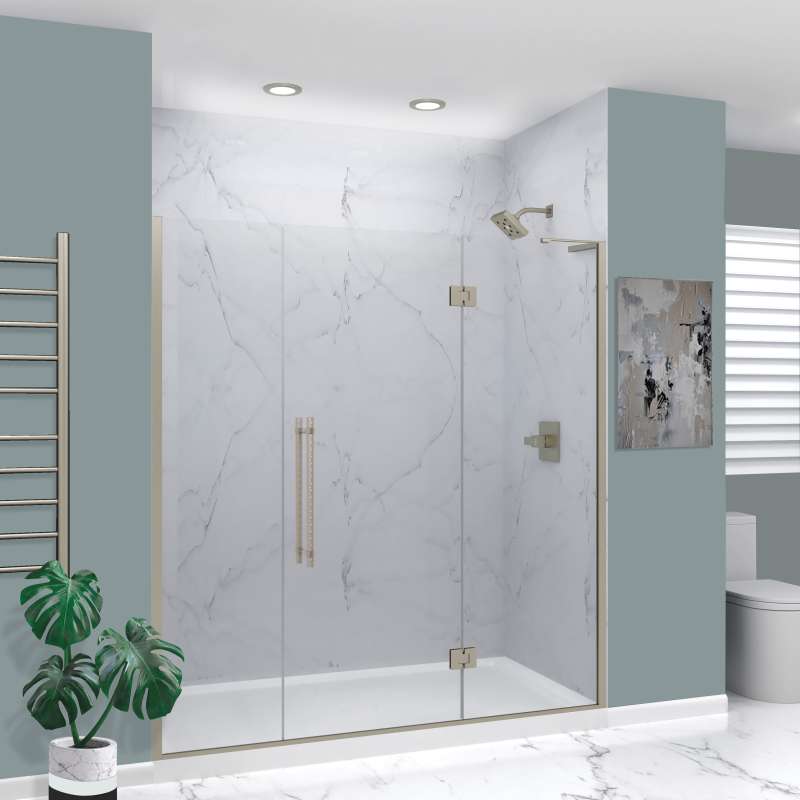- 73 - 74-in W x 76-in H wall mounted single panel swing shower door for an alcove (3-wall) shower