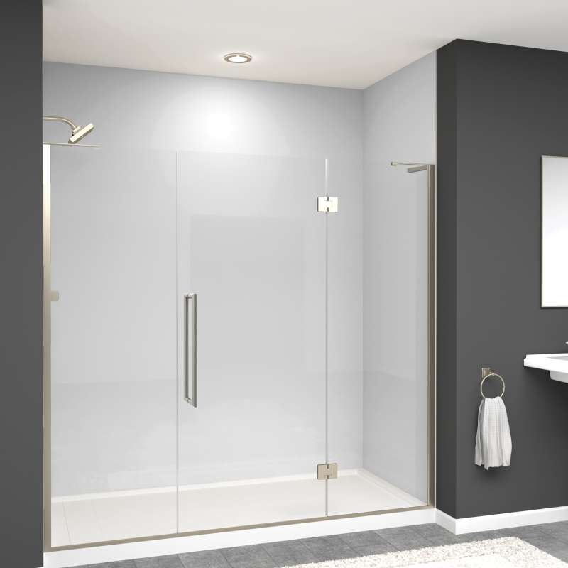 - 76 - 77-in W x 76-in H wall mounted single panel swing shower door for an alcove (3-wall) shower