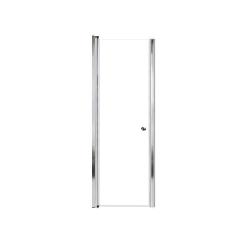 - Modern look slim pivot shower door with 1/4-in Clear tempered glass and 70-in high