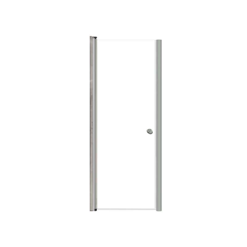 - Modern look slim pivot shower door with 1/4-in Clear tempered glass and 70-in high