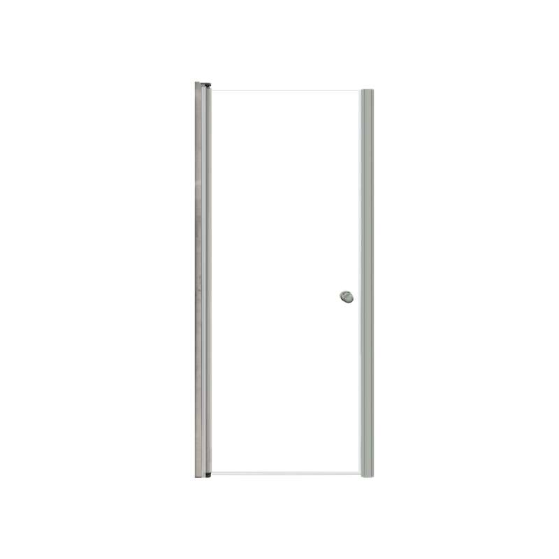 - Modern look slim pivot shower door with 1/4-in Clear tempered glass and 70-in high