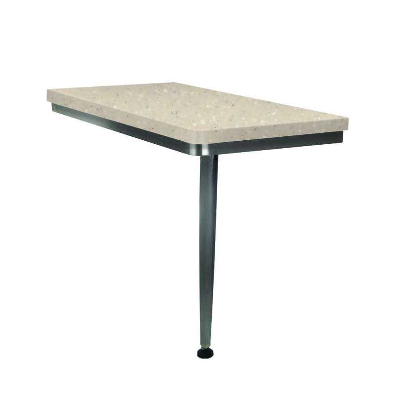- Seat includes metal frame with fixed leg in brushed stainless finish