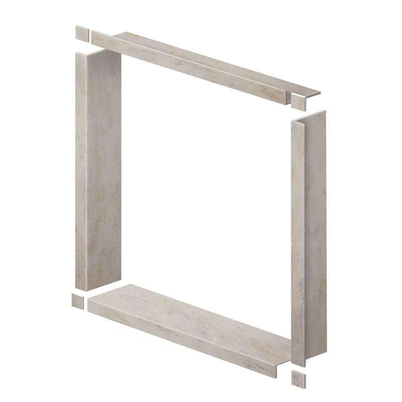 - Solid surface material: four square corner blocks, one horizontal sill panel, two vertical and one horizontal jamb panel
