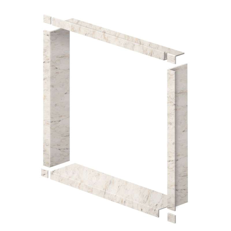 - Solid surface material: four square corner blocks, one horizontal sill panel, two vertical and one horizontal jamb panel