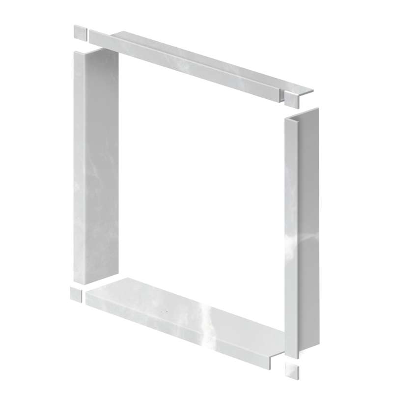 - Solid surface material: four square corner blocks, one horizontal sill panel, two vertical and one horizontal jamb panel