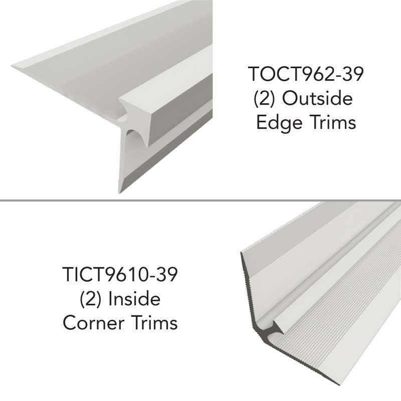 | Component(s) Included | Two (2) aluminum inside corner trim pieces and two (2) aluminum outside edge trim pieces |