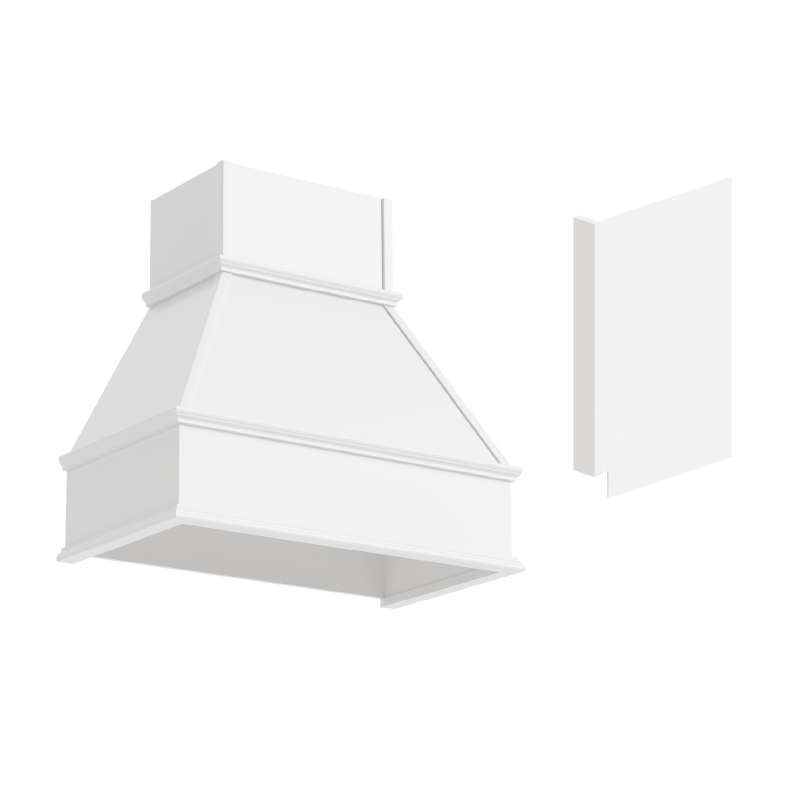 Kit includes (1) wood hood and (1) dishwasher return panelWood hood houses a recirculating vent that filters kitchen air or a vented hood that removes cooking byproducts like smoke, steam and odorsWood Hood Dimensions: 37.875-in W x 22-in D x 33.5-in HWhite painted with UV coatingWood hood made from 0.5-in plywood panels with solid birch moldingAssembledSMDWR3 dishwasher return panel included as a surround for the vents; made from 0.5-in thick plywood panel and 3-in solid birch filler5-Year Limited Residential Warranty