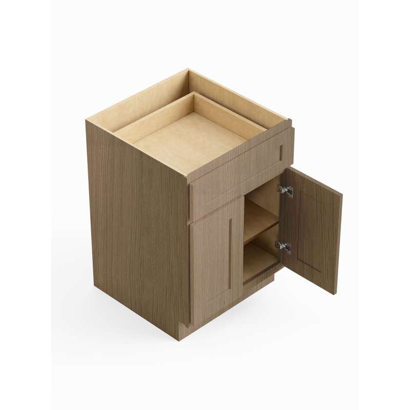 - Framed base cabinet with (2) doors, (1) drawer, and (1) full depth shelf