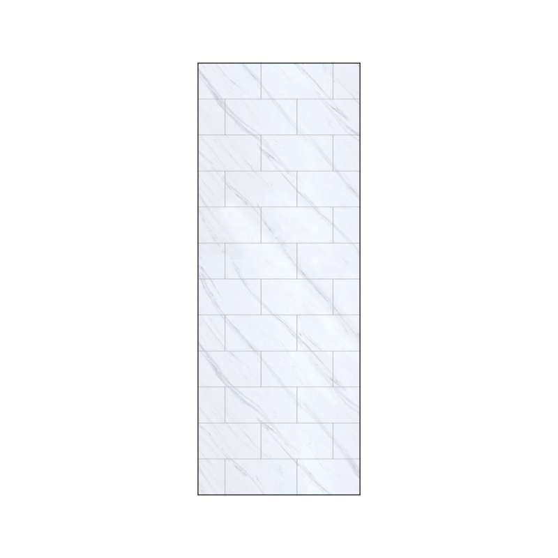 - Walls are doubled-sided with one side having a matte smooth finish and the other side having an 8-in x 16-in horitzontal tile pattern with Light Grey grout