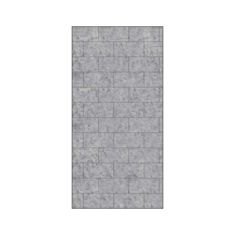 - Walls are doubled-sided with one side having a matte smooth finish and the other side having an 8-in x 16-in horitzontal tile pattern with Dark Grey grout
