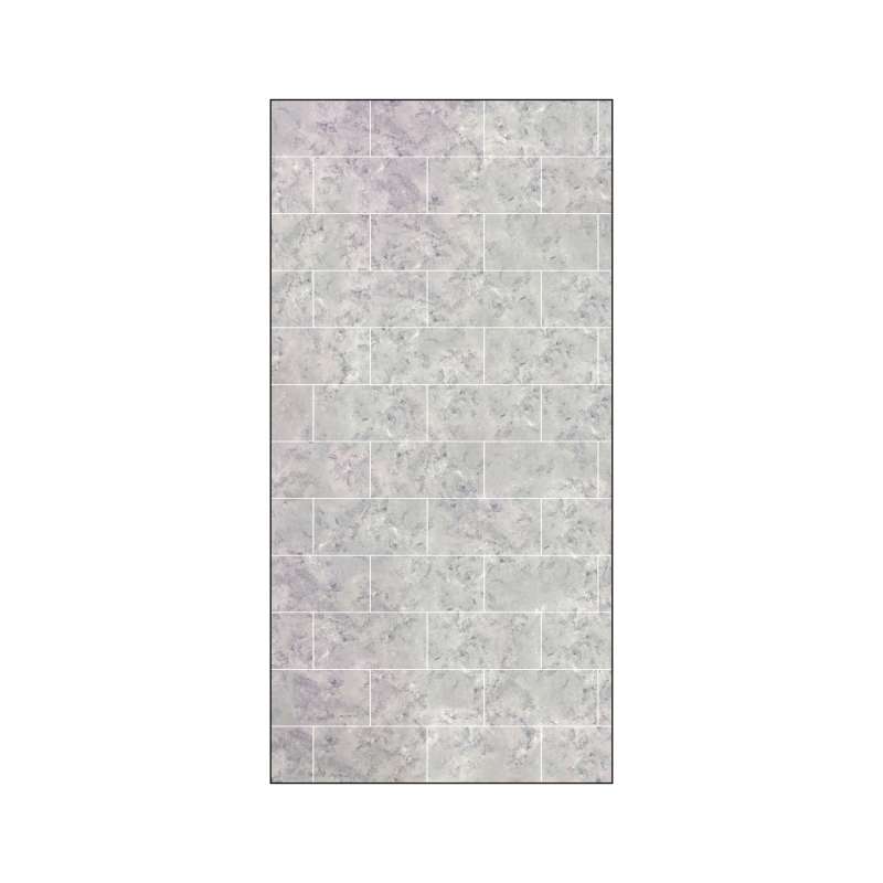 - Walls are doubled-sided with one side having a matte smooth finish and the other side having an 8-in x 16-in horitzontal tile pattern with White grout