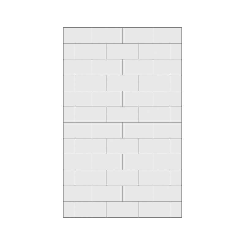 - Walls are doubled-sided with one side having a matte smooth finish and the other side having an 8-in x 16-in horitzontal tile pattern with Dark Grey grout