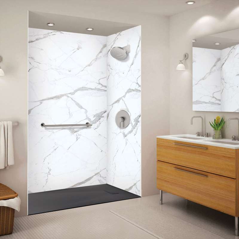- REVERSIBLE DRAIN: end drain location with SMC color-matched drain cover that conceals a conventional 2-in shower drain, creating a pleasing uniform and minimalist design; drain not included
