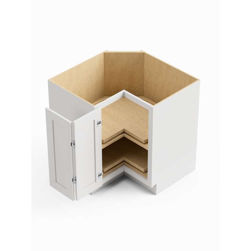 - Framed Lazy Susan easy reach base cabinet with (1) bifold door, (1) full depth shelf, and (2) Lazy Susan trays