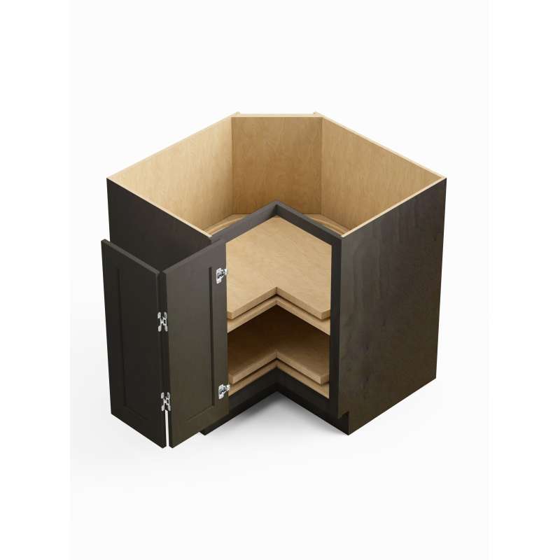 - Framed Lazy Susan easy reach base cabinet with (1) bifold door, (1) full depth shelf, and (2) Lazy Susan trays