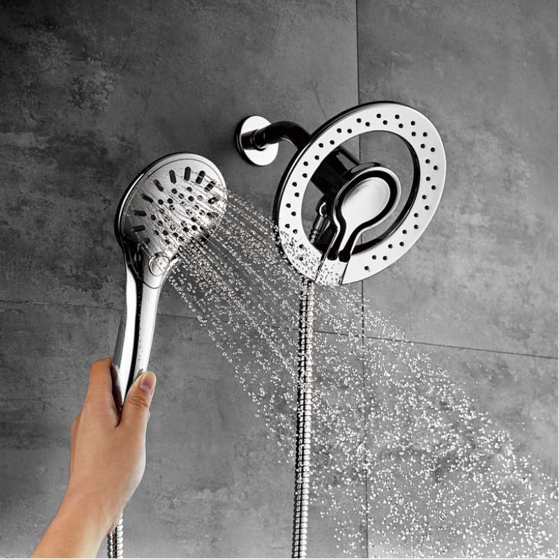 - Auto-Switch Technology: water flows from the showerhead and hand shower while the hand shower is docked; water automatically switches to flowing from the hand shower only when the hand shower is removed from its magnetic bracket