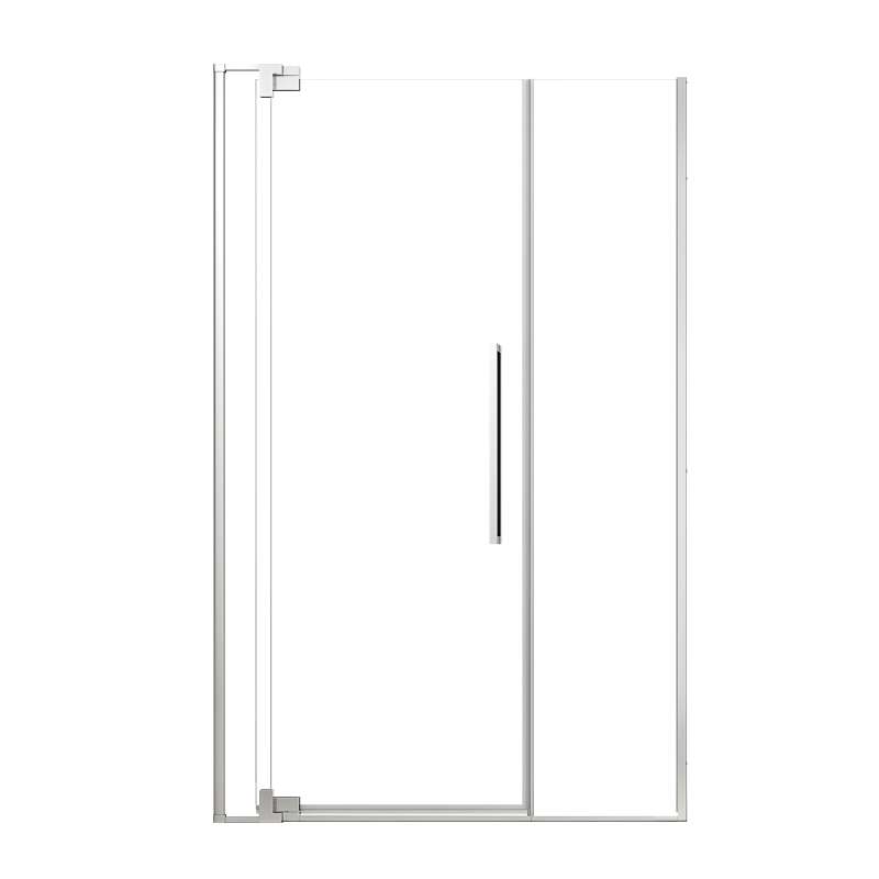 - 45-in to 49-in W x 76-in H hinged pivot shower door with fixed panel and inline panel for an alcove shower