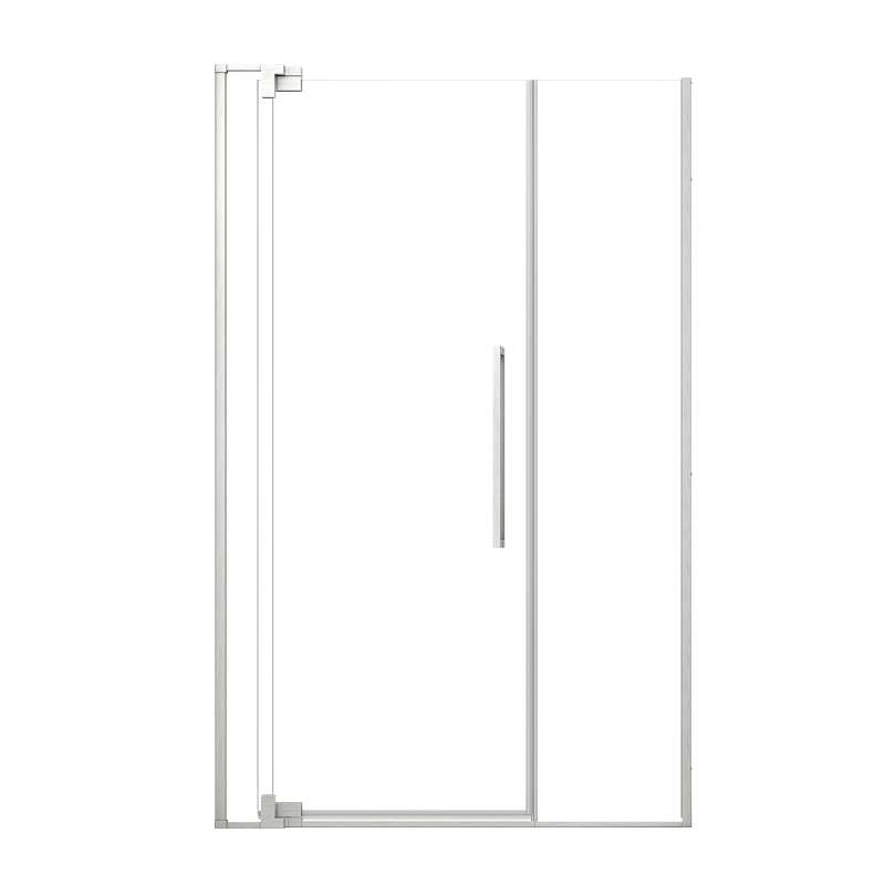 - 51-in to 55-in W x 76-in H hinged pivot shower door with fixed panel and inline panel for an alcove shower