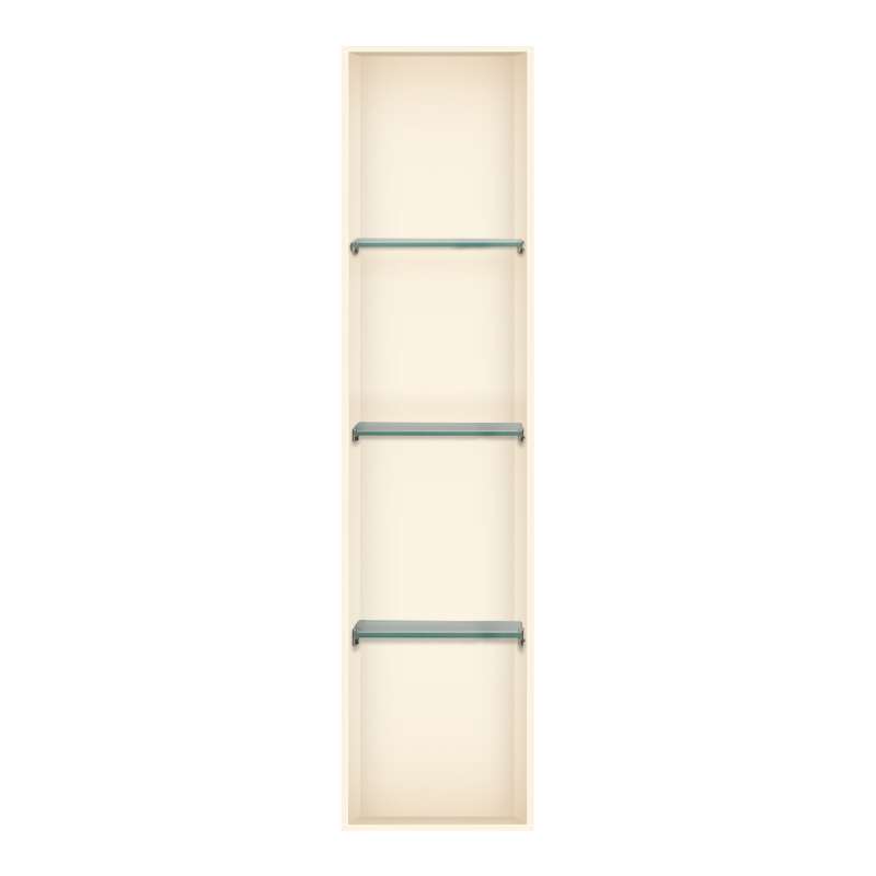 • SMSTV5714-CA 14-in x 4-in x 57-in Recessed Stainless Steel Vertical Shower Storage Pod With Three Shelves, Cameo Cameo