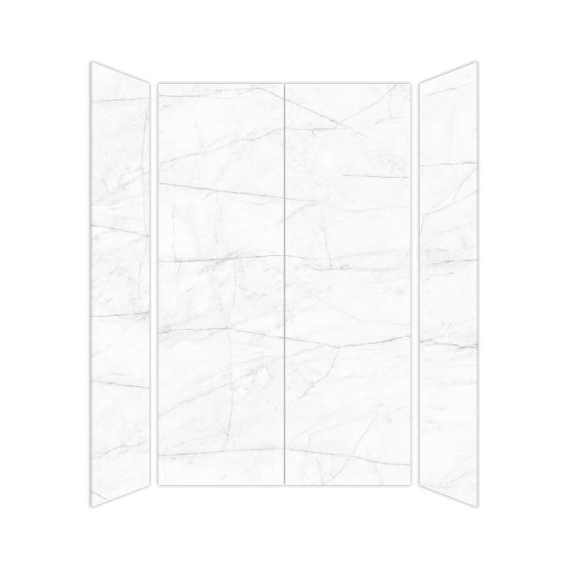 • SMTWK603696C-KI01H Trinity 60-in x 36-in x 96-in 4-Piece Shower Wall Kit, White Carrara (Honed) White Carrara (Honed)