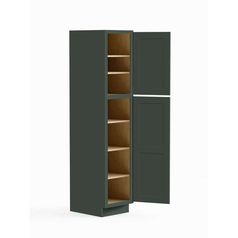 - Framed tall utility cabinet with (2) doors and (5) full depth shelves