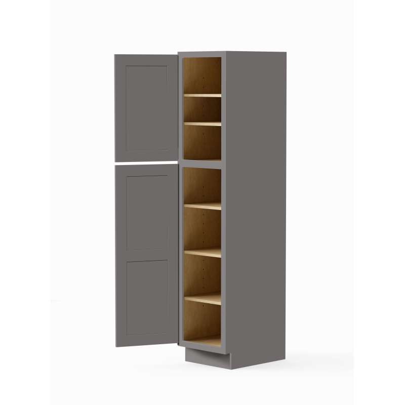 - Framed tall utility cabinet with (2) doors and (5) full depth shelves