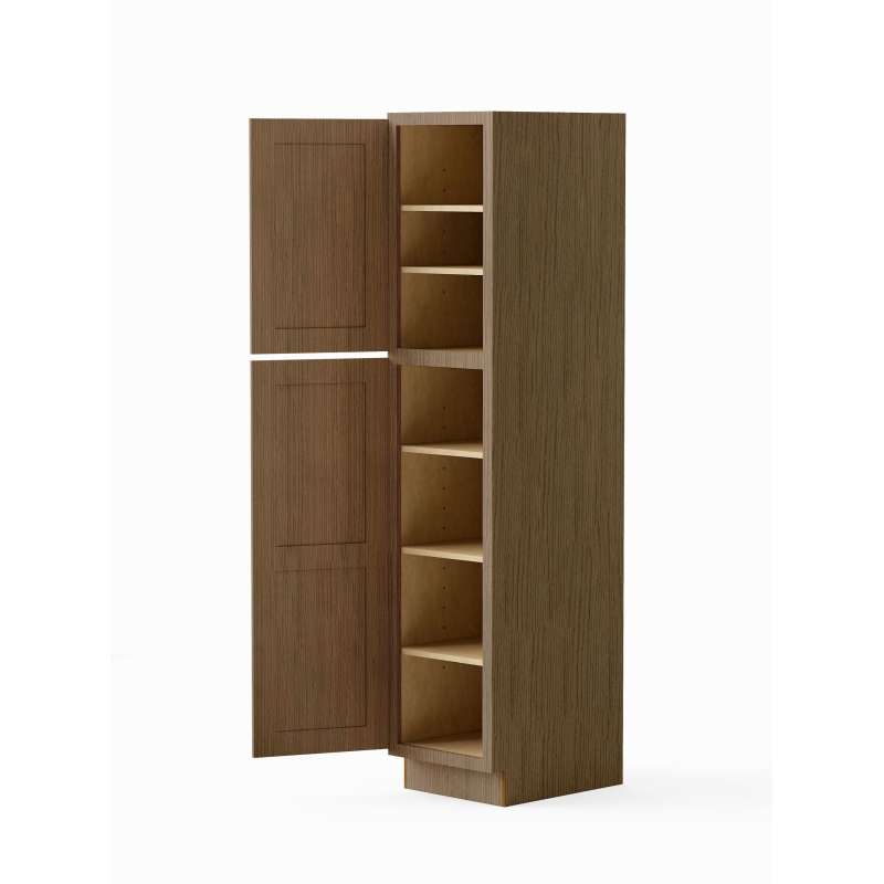 - Full overlay left-hand opening doors in the Shaker style
