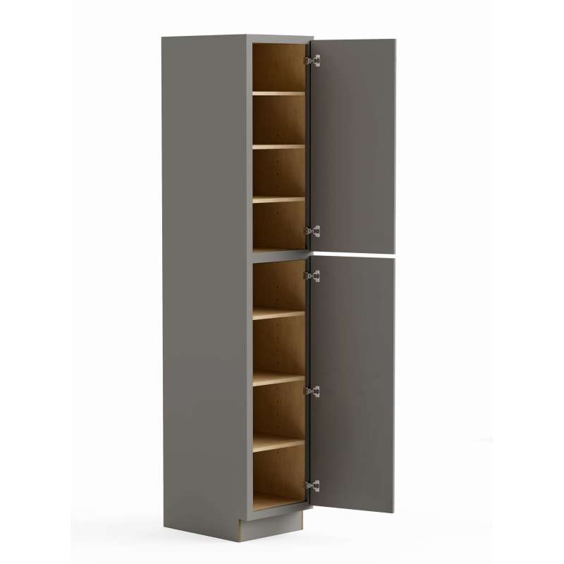 - Full overlay right-hand opening doors in the Slim Shaker style