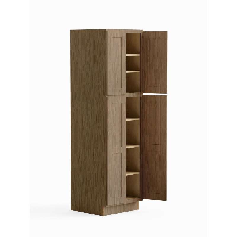 - Framed tall utility cabinet with (4) doors and (5) full depth shelves