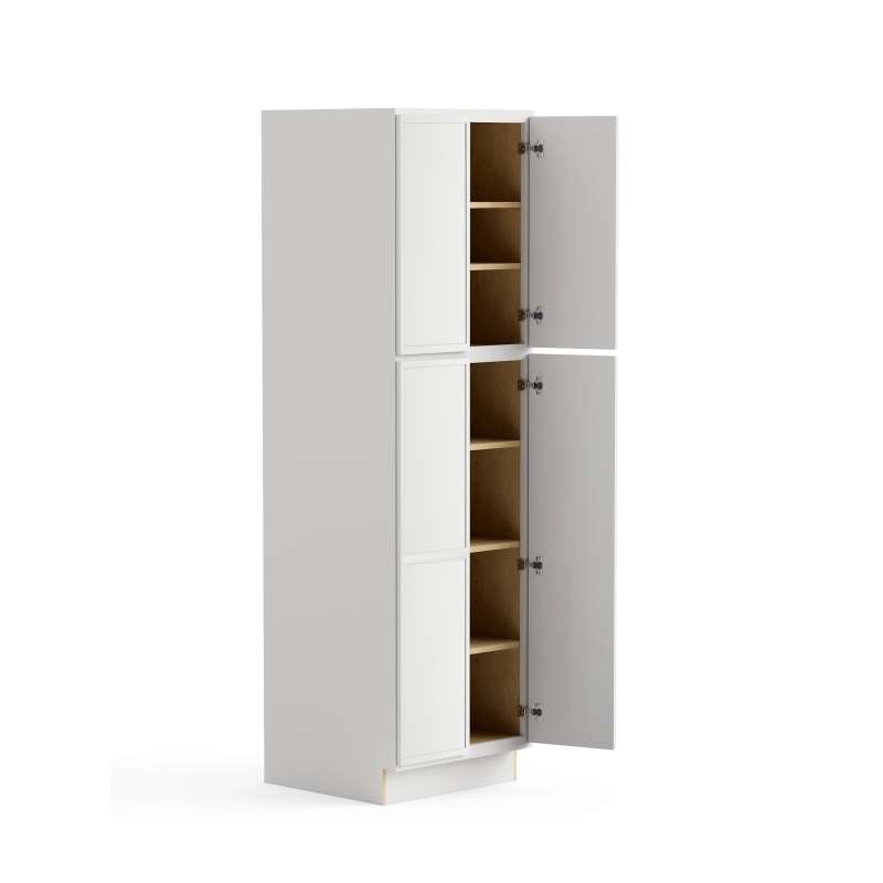 - Framed tall utility cabinet with (4) doors and (5) full depth shelves